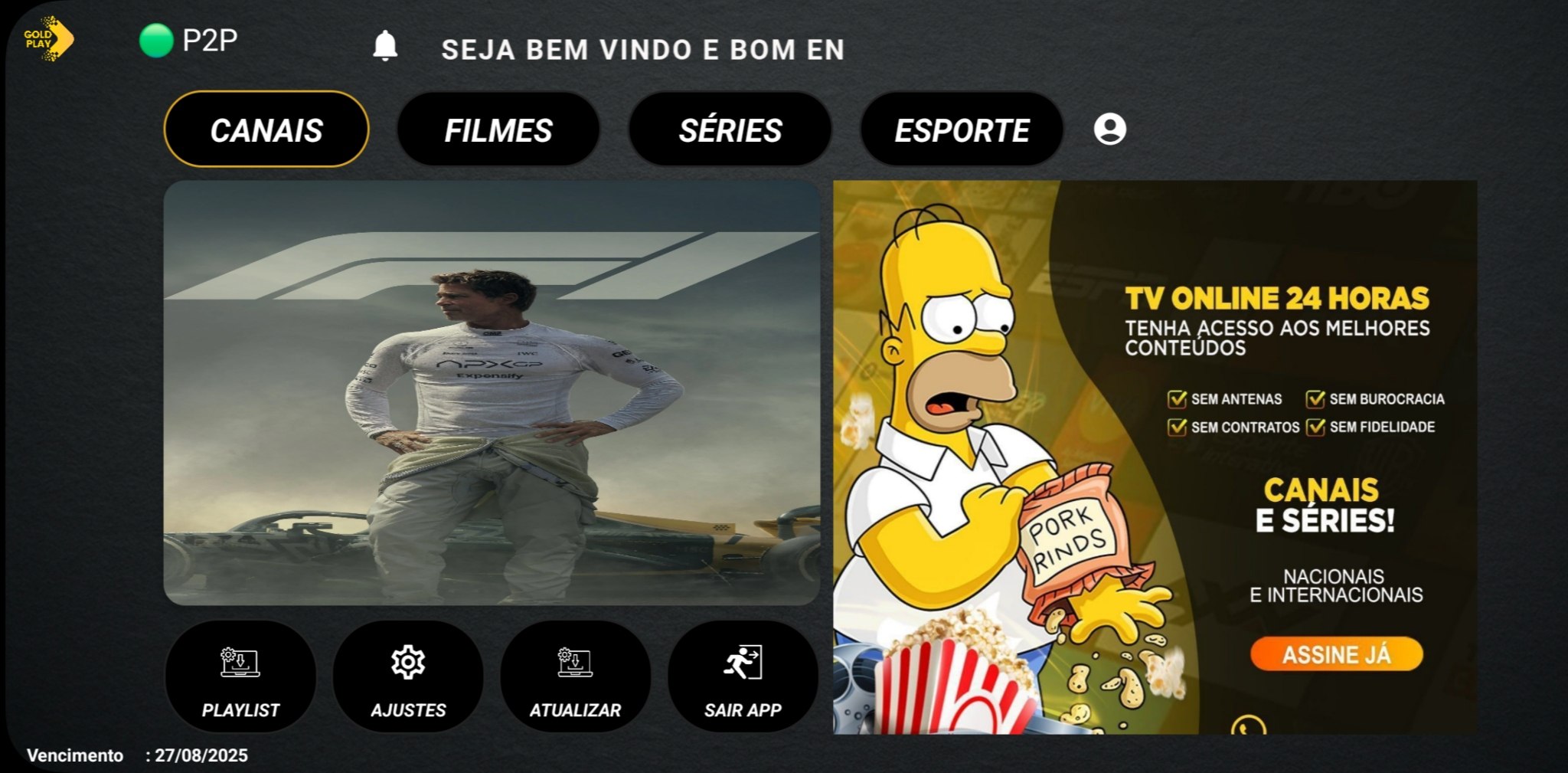 [P2P] Gold Play Pro | Código Downloader: 8206371 Link APK: https://tinyurl.com/goldp2pro