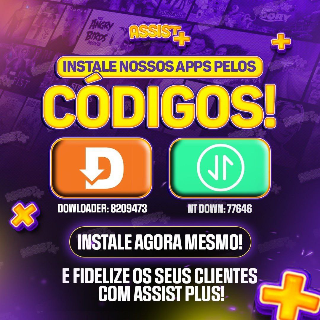 Assist Plus (Não funciona em celular) Código Downloader: 8209473 Pin NtDown: 77646 Link APK: https://tinyurl.com/assistplusgold